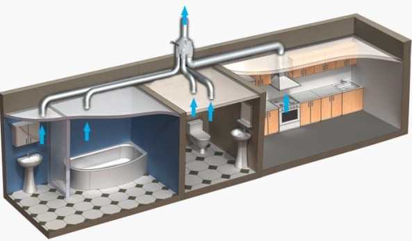 Удаление отработанного воздух из помещения — задача вытяжной вентиляции. Удаление использованного воздуха из комнаты происходит за счет понижения давления в ней. Таким образом, создаются условия для поступления в нее воздуха снаружи или со смежного помещения.