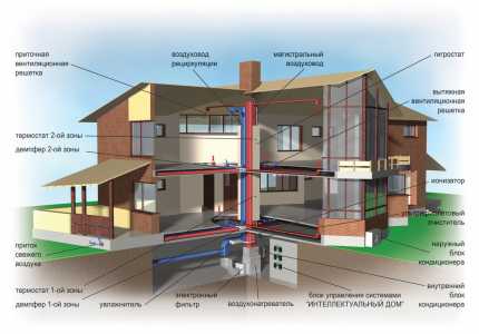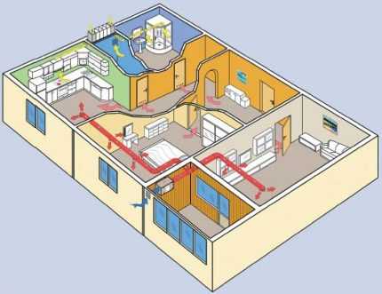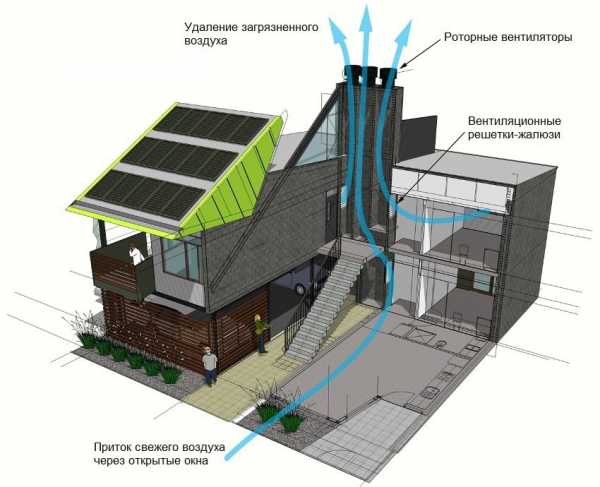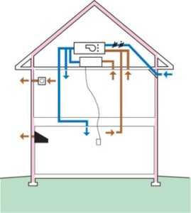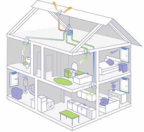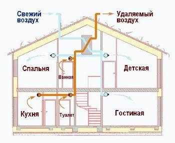 В коттеджах и частных домах есть несколько основных вариантов устройства вентиляции.