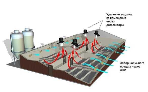 В промышленности аэрацию применяют при наличии процессов, где по технологии работа сопровождается выделением тепла в большом количестве. Ее применение допустимо при условии, что в приточном воздухе содержится менее 30% вредных выбросов от допустимой концентрации непосредственно в зоне их образования.