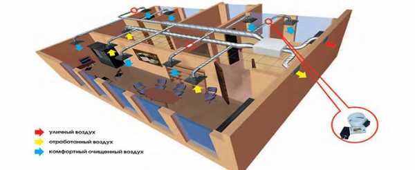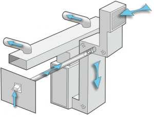 Схема движения воздуха в приточно-вытяжной системе вентиляции в офисе