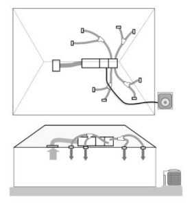 При установке системы необходимо по схеме проложить специальные вентиляционные рукава, а также все необходимые части. При этом следует помнить, что если вы решите использовать те части, которые не входят в базовую комплектацию, то в этом случае поток воздуха будет значительно меньше. Чтобы произвести правильный расчет, необходимо учитывать диаметр вентиляционных труб, а также производительность вентиляторов, расположенных на наружной части дома.