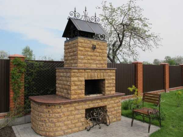 Вместо мангала можно установить закрытый уличный камин, печь с жаровней, коптильню или барбекю. Уличный камин подойдет семье, имеющей детей — он представляет собой наиболее безопасное сооружение, поскольку не имеет открытого огня.