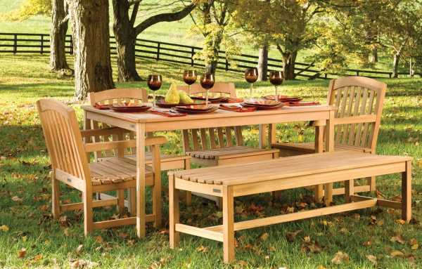 Мебель выбирают такую, чтобы она была максимально устойчива к негативным погодным факторам и имела небольшой вес, чтобы при необходимости ее можно было легко спрятать в помещение. Наибольшее распространение при обустройстве зоны отдыха на даче приобрела такая мебель: