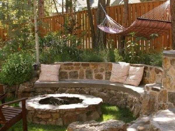 Самым простым в организации будет именно этот способ. Он не требует специфических средств и большого количества строительных материалов, а главное – трудовых затрат. Для него идеально подойдет покупной мангал или печь-барбекю. Фантазию можно не ограничивать установкой шезлонгов или лавочек со столами. Их с успехом заменят качели, расположенные возле очага, который можно построить по открытому принципу.