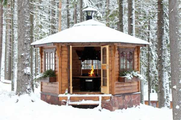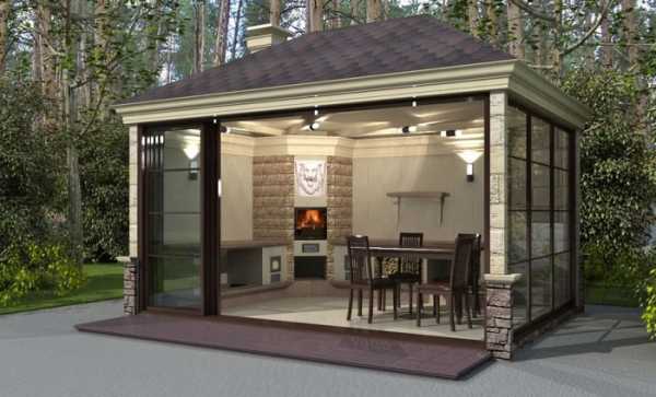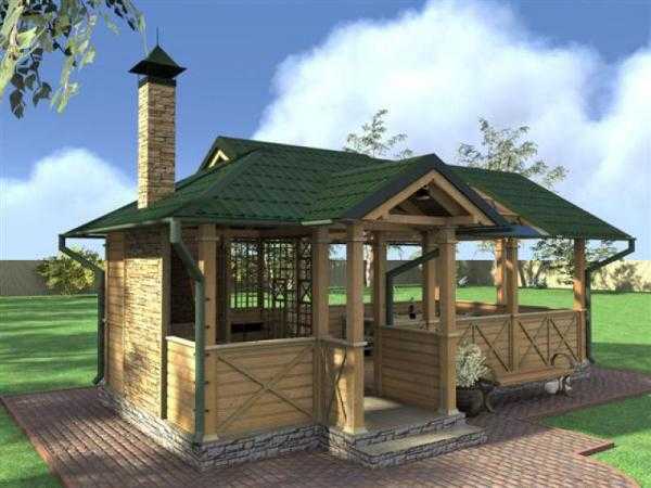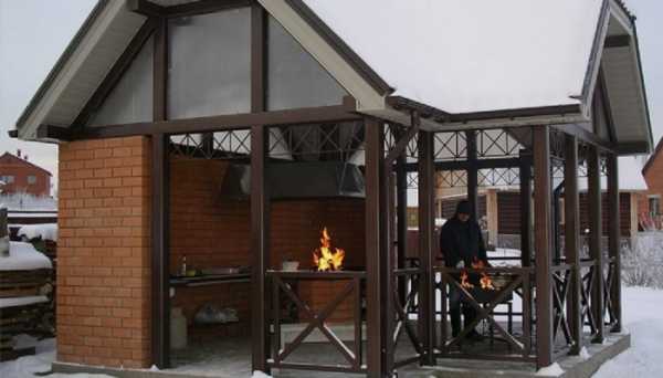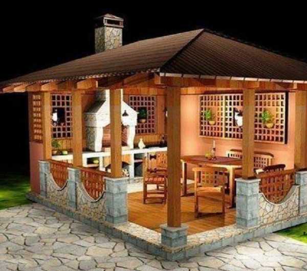 К вариациям закрытого типа относят беседки и павильоны, которые можно сочетать с полноценными печами, где можно готовить большое число разнообразных блюд, то есть использовать не только мангал или гриль. Возможно это благодаря трубам, которые выводятся над кровлей.