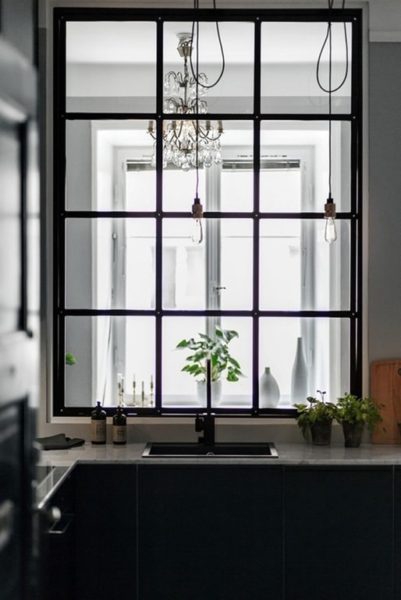 В заключение темы про межкомнатные окна скажу несколько слов по поводу дизайнерских решений и вариантов установки окон. Здесь все зависит, опять-таки, от места установки и обстоятельств. К примеру, между кухней и гостиной лучше делать одно большое окно, а между гостиной и спальней вполне будет достаточно несколько маленьких, помещенных под самым потолком. С задачей освещения они отлично справятся. Довольно часто такие окна совмещают с перегородками, в том числе и трансформируемыми – для кухни вообще шикарный вариант.