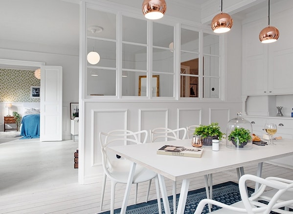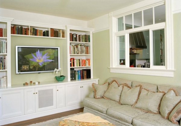Что еще нужно знать по поводу межкомнатных окон? Несомненно, то, что они делают площадь возле себя малопригодной к использованию – шкаф возле такой стены вы уже не поставите. Как вариант, можно установить стол, но лучше всего оборудовать такое окно подоконником, которое запросто можно использовать в качестве полочки, а если говорить об окне в кухню, то и в качестве обеденного столика, за которым легко можно расположиться как со стороны гостиной, так и со стороны кухни. В общем, этот момент нужно хорошо продумать применительно к своим индивидуальным обстоятельствам – если можно с пользой для дела использовать подобный элемент интерьера, то почему бы этого не сделать?