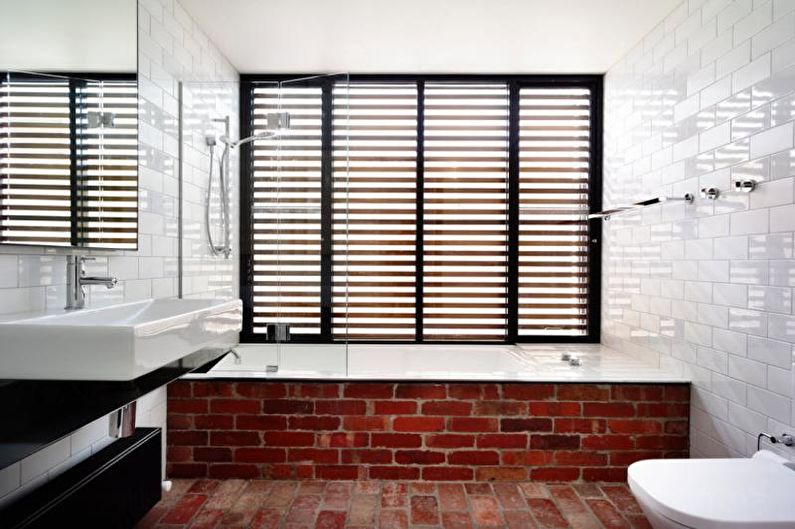 Ванная комната – это особое место, где мы утром проводим драгоценные минуты перед выходом «в свет» и вечером до путешествия в страну сновидений. Поэтому ее дизайн должен быть лаконичным, стильным и функциональным. Именно так он будет выглядеть в сочетании с кирпичной стеной. Белые или бежевые цвета такой стены визуально расширят пространство, будут хорошо сочетаться с керамической сантехникой, внесут ощущение уюта, а кофейные, яркие и темные оттенки создадут эффект брутальности, консервативности и оригинального подхода к оформлению дизайна.