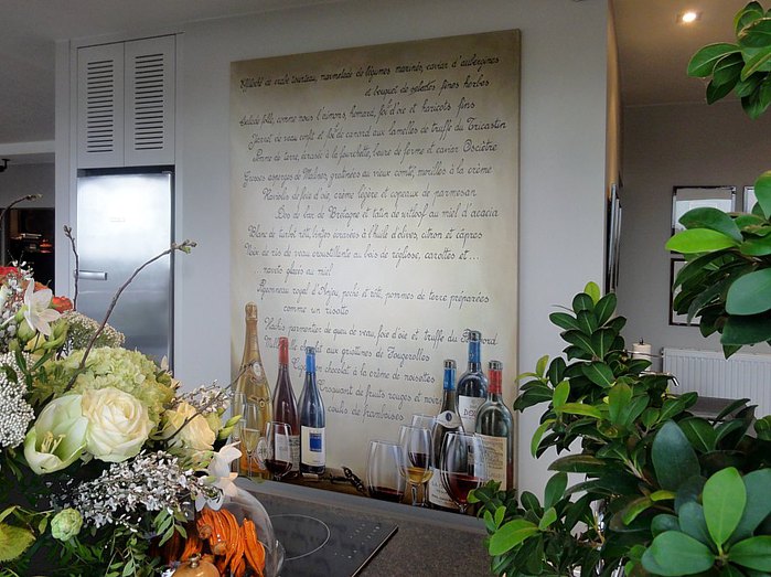 А на этой кухне роспись стены сводилась к оформлению рисованными винными бутылками и текстом.