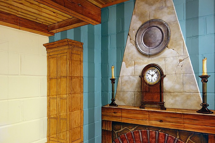А вот вариант росписи стены в виде камина. Тепло и уют так и разливаются по помещению. А всего-то – нарисовали очаг!