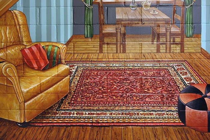 Посмотрите, с какой точностью переданы нюансы брусчатки – кажется, что роспись – это продолжение пола.