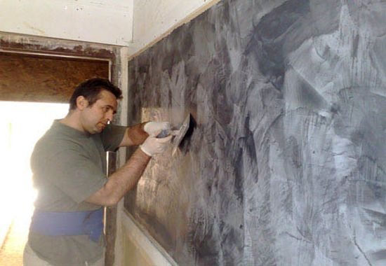 Второй финишный слой чуть более толстый, чем первый и наносится той же гладилкой. Движения гладилкой при нанесении — круговые и хаотичные. Радиус круговых движений не превышает 20 см. За счет небольшого радиуса вы сможете добиться эффекта бархатистых переливов.